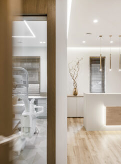 Šis interjeras – tai odontologijos klinika, kurioje siekta sukurti jaukią, šiuolaikišką ir pasitikėjimą keliančią atmosferą.