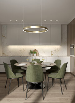 Šis butas, tai erdvė, kurioje kiekviena detalė turi aiškią funkciją. Interjeras kalba apie brandą, subtilumą ir praktišką požiūrį į kasdienybę. Žalios spalvos akcentai subtiliai įneša gyvybės ir gaivumo.